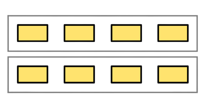 - 2 rows of 4 bananas → 4 + 4 = 8