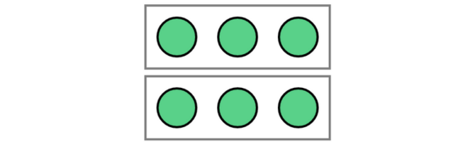 → 2 rows of 3 apples each